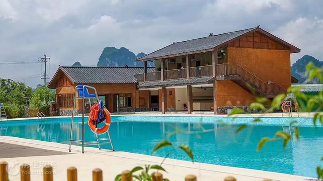 天琴壮寨根据龙州黑衣壮原住民的木楼,按照1:1的比例翻建,干栏式建筑、一楼架空层、二楼三楼的空间和用途已做了优化,其目的是展示龙州壮族人民的生活场景,也是为了传承发展壮族的“非遗文化”,天琴、壮锦、绣球、铜鼓、壮刀,壮族“五宝”的展示,正是“世界文化遗产”花山岩画的非遗文化的补充。在这里,我们可以体验到天琴剧展演中,壮族人民“天天放在歌里过”的日子。天琴壮寨作为景区的核心商业区,设置有大型泳池、手信馆、美食餐厅、水上云梯、旋转图书馆、1:1呈现的壮寨木楼、水上集市、下沉式卡座等服务版块。在市委宣传部的关心和指导下,正在筹备“四个一”内容植入:“一台天琴表演”、“一个文创馆”、“一个制作工坊”、“一套天琴下午茶