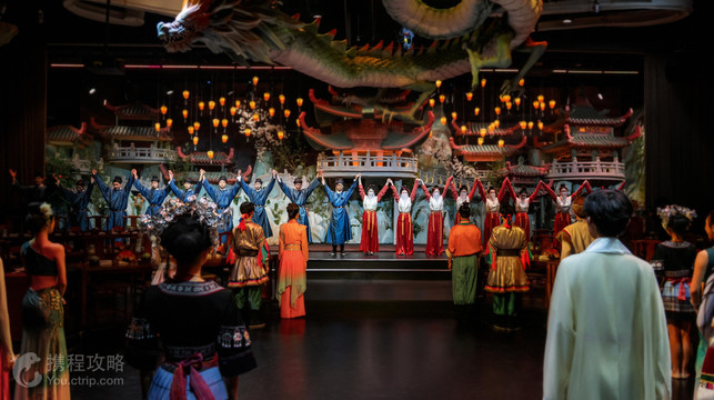 杭州叙宴以“万邦来朝”为主题,打造融合演出、互动、打卡、市集于一体的盛唐风貌体验空间,为顾客带来一场可参与、可记录、可传播的国风盛宴。“穿唐服,赚通宝,逛西市;观霓裳,赏杂技,贺山河——来叙宴,做一日盛唐人。”公告