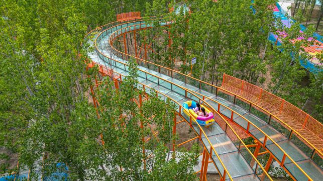 充满速度与激情的亲子卡丁车、绳网联结的丛林漫步、浪花阵阵的水世界……漫步园区,游客们或在水中嬉闹,或在攀爬挑战,玩得不亦乐乎。