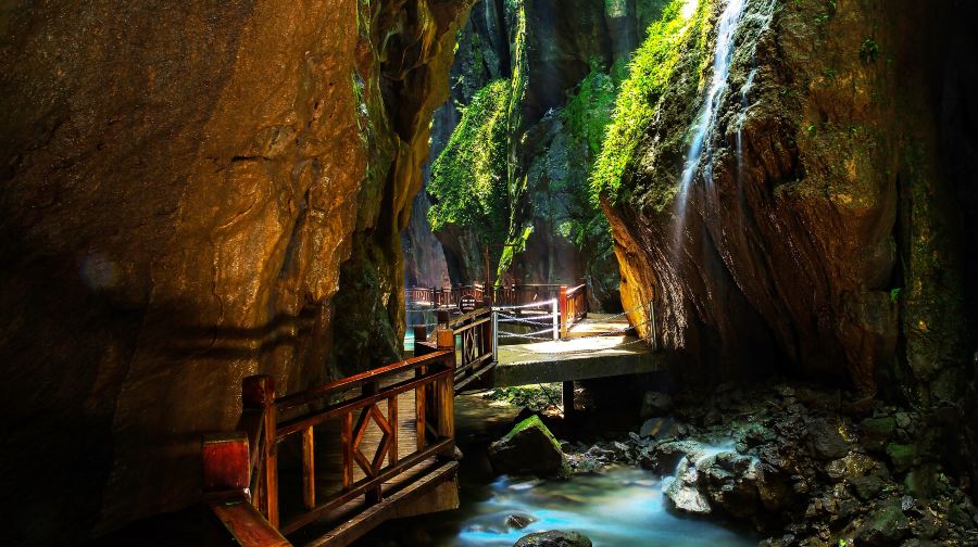张家界地缝景区(原张家界一线天)地处慈利县朝阳境内,是世界上较长的“一线天”奇观。它是 赵家垭库区流水经几亿年 冲刷,把暗河运行轨迹形成的各类奇异岩溶地貌型态全都显露出来的水底大溶洞,洞穴廊道呈峡谷状态,走向由南向北穿山而过。溶洞内溶痕、流痕、波痕、窝穴、天锅、槽穴、暗竖井、洞顶穹窿、孔窗、岩底坎、岩边槽、岩角、磨坑、沉积砂砾石等无奇不有,洞壁沉积物有石莲、石须、石幔、石瀑布、石壁流等气势磅礴,洞穴水文景观有水池、水潭、溶泉、流水瀑、滴水瀑等神秘莫测。整个洞穴岩溶润滑浑圆,岩质光泽亮丽,造型怪异,规模大气,处处充满了大自然的神秘和惊险。公告