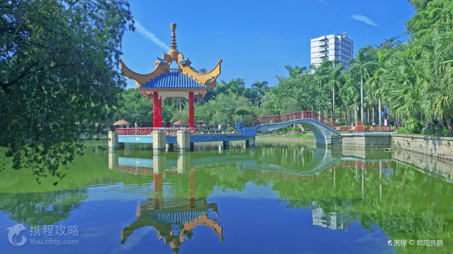 公园位于金砂路南侧,是供市民休憩娱乐的绿化地,也常举办各种园林展览。游览者可欣赏园内和门口造型别致的柱亭,一柱擎盖,头重脚轻,颇有汉代建筑风格。