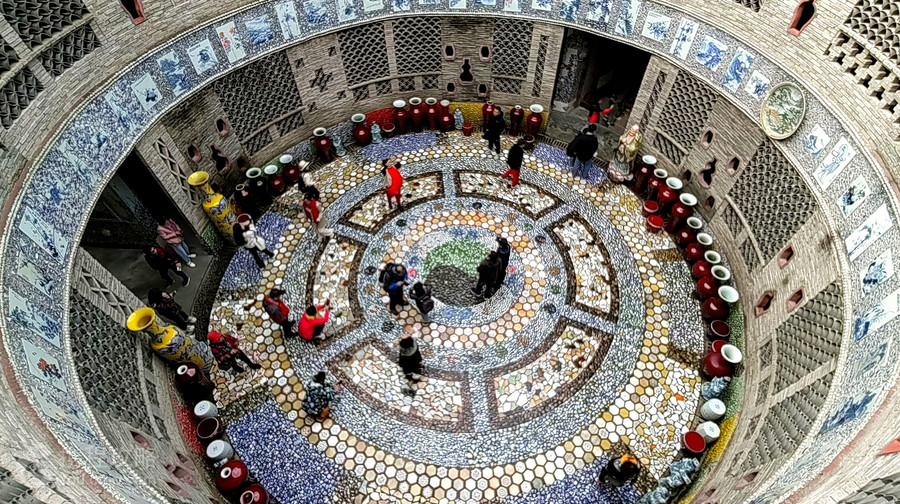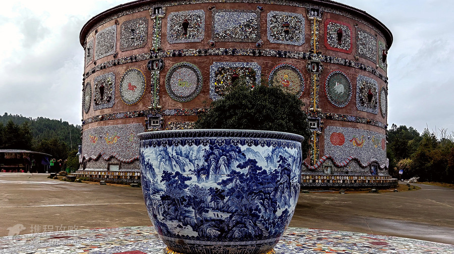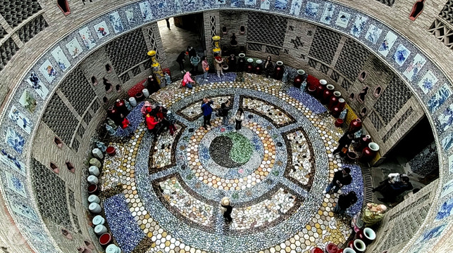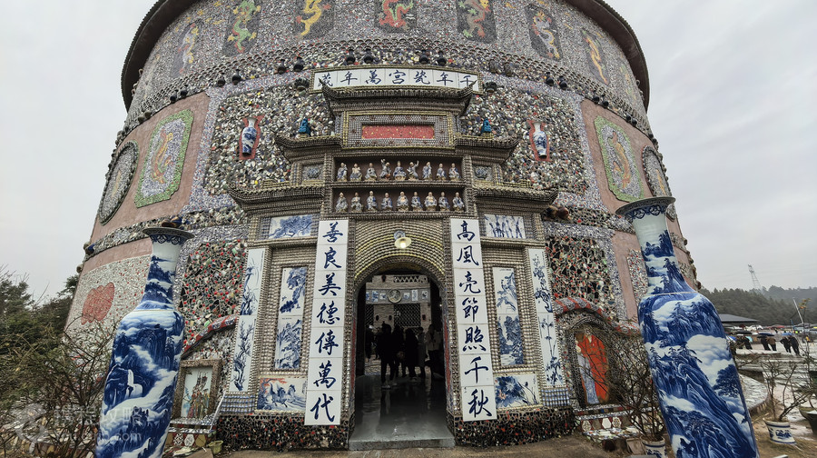 浮梁县新平村瓷宫位于景德镇浮梁县新平村,是一个以“瓷器”为材料所打造的建筑,整个浮梁县新平村瓷宫耗费了6万多件瓷器,全身镶嵌了数万件各色瓷片、瓷瓶、瓷盘,主要有景德镇四大名瓷:青花、玲珑、粉彩和颜色釉。瓷器一半嵌入墙体,摆放成各种造型,风格别出心裁,大胆粗犷。“宫殿”上还镶嵌了大量大小不一的瓷板画。装饰所用瓷器都是老人数十年积累之物,其中多为上世纪80年代柴窑烧制,不乏精品。公告