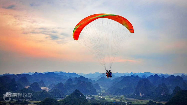 螺蛳粉小镇飞行营地坐落在百乐竹海山顶,稳定的气流,开阔的视野,特别适合初学者飞行体验。基地连绵喀斯特山脉,风景独特秀丽,全年可飞天数达280天。