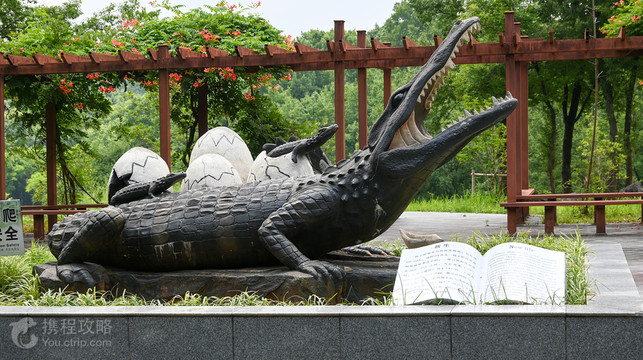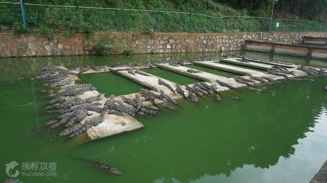中国扬子鳄景区即安徽省扬子鳄繁殖研究中心,中国扬子鳄景区是一处岗峦起伏的丘陵,境内有高大乔木和灌木丛林,泽边草丛荆棘,植被覆盖良好。沟壑、池塘、山洼、水库贯串其间,连成水网,是一处适宜扬子鳄栖息繁衍的理想生态环境。中国扬子鳄景区始建于1979年,是我国比较大的扬子鳄保护基地,经过20年的人工饲养繁殖,扬子鳄数量已由当初野生收集到的140余条,增加到1万余条,并具备年繁殖1500条的能力,扬子鳄已渡过“濒危线”。这一成果获得了国际社会的肯定和赞誉。中国扬子鳄景区不仅是自然保护区和科研基地,也是一处风景优美的旅游观光胜地。 因扬子鳄的外形有点像龙,俗名又沾个“龙”字,所以在我国历史上早就身价高贵。传说2000多年前,越王勾践为了复国曾祭祀鳄鱼,希望能得到它的庇护。后来,果然依仗三千铁甲吞灭吴国,报仇雪耻。可见,鳄类在我国影响久远。扬子鳄是两栖动物,肉食。主要食物是鱼、螺、蚌、虾、鸡、鸭、鹅等。自1987年开始,中国扬子鳄景区逐渐对游客开放。