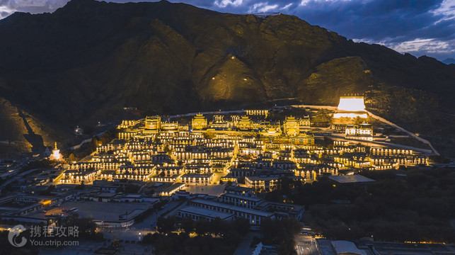 扎什伦布寺的藏语意为“吉祥须弥山”,是格鲁派六大寺院之一(其余五个是:甘丹寺、哲蚌寺、色拉寺、塔尔寺、拉卜楞寺),也是藏传佛教格鲁派在后藏地区规模较为庞大的寺院。公元1447年由格鲁派祖师宗喀巴大师的弟子根敦珠巴主持创建,历时12年方才建成。自四世班禅之后,扎什伦布寺成为历代班禅驻锡之地。 措钦大殿是扎什伦布寺的主殿,步入寺院大门眼前的建筑物就是此殿。殿门外是由回廊围成的院落,是寺院的讲经场。过去班禅大师经常在这里向全寺僧人讲经布道,也是喇嘛们进行宗教答辩的场地。大殿前部是大经堂,经堂的中央是班禅的宝座,经堂后面的三间佛殿,释迦牟尼殿居中,西侧是弥勒殿,东侧为度母殿。 寺内宏伟的建筑是大弥勒殿,藏语称“强巴康”,佛殿分五层,下面还有两层回廊。殿高三十米,全为石垒砌,接缝密实,庄严肃穆。整个佛殿呈阶梯状,层层收拢高出。每层顶角各卧雄狮一尊,殿堂以铜柱金顶装饰,气势雄伟壮阔。中间供奉着1914年九世班禅曲吉尼玛主持铸造的鎏金青铜强巴佛,即弥勒佛的坐像。佛像高26.2米,蹲坐在高达3.8米的莲花基座上,威武庄严。佛像眉宇间镶饰有大小钻石、珍珠、琥珀、珊瑚、松耳石等宝石1400多颗,佛身共耗黄金6700两,黄铜23万多斤。 寺院东部,有7座灵塔殿,内有历代班禅的舍利塔。其中有名的为觉干夏殿,殿中四世班禅灵塔建于1662年,塔高11米,金银为底,银皮裹身,嵌有珠宝玉石等物,塔内放有四世班禅遗骨。五至九世班禅合葬灵塔殿称“扎什南捷”,五至九世班禅的遗骨分装在5个檀香木盒内,安放在灵塔的宝瓶里。灵塔正中安放着九世班禅曲吉尼玛的铜像。灵塔高度为11.52 米,塔身镏金,以银皮包裹,遍镶珠宝,雕饰华美,造型庄严。 寺内还藏有珍贵文物多种,其中价值较高的要算悬挂在“加纳拉康”内清乾隆皇帝的画像和收藏在此的各种文物。有宋、元、明、清时代的影青、青花、龙泉等名贵瓷器,有丝或织绵的佛像卷画,有玉石、水晶等工艺品和明代铜佛等,都是传世的珍贵文物。 展佛台位于寺院的东北部,由根敦珠巴为纪念释迦牟尼诞生、成佛、涅磐而建,后经四世班禅洛桑曲吉进行了大的修建。每年藏历5月15日前后三天,都会举行隆重的展佛活动,将过去佛(无量光佛)、现在佛(释迦牟尼佛)、未来佛(强巴佛)这三幅刺绣佛像展挂在高32米的展佛台上,僧众和信教群众顶礼膜拜,敬献哈达。