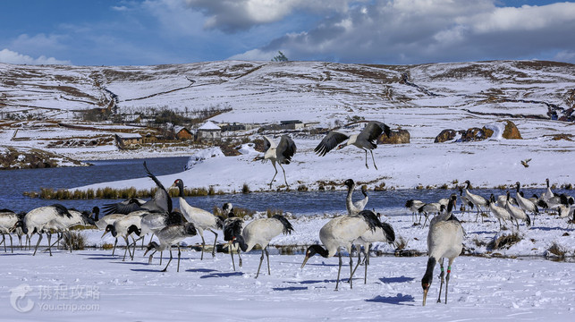 大山包黑颈鹤国家级自然保护区位于云南昭通市,是黑颈鹤的重要越冬地。保护区海拔约3100米,冬季气候寒冷,常有积雪,形成独特的高原湿地生态。每年11月至次年3月,黑颈鹤从青海等地飞来,是观鸟爱好者的理想去处。景区不仅以黑颈鹤闻名,还因其壮丽的自然景观吸引游客。这里有广阔的草甸、湖泊和山峦,日出和日落时分尤为迷人。建议游客穿着保暖衣物,携带望远镜和相机,以便更好地观察和记录黑颈鹤。保护区内设有观鸟台和步道,方便游客近距离接触自然。当地村庄提供简单的住宿和餐饮服务,让游客体验淳朴的高原生活。为保护生态环境,游客需遵守相关规定,不干扰野生动物。公告