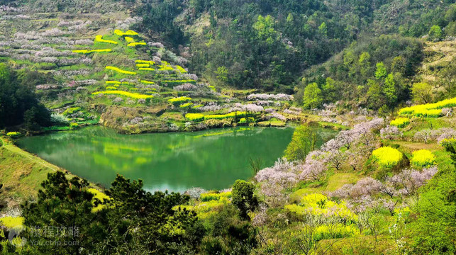 沼山古村桃乡景区被誉为"湖北小婺源"。景区背倚连绵沼山,面朝清幽溪谷,以万亩桃林和百年古村刘通湾为核心景观,拥有"九古奇村"之美誉——古树、古墓、古井、古祠、古碑、古道、古沟渠、古宅、古碾等历史遗存遍布村落。春季桃花盛开时,漫山遍野绯红如云,吸引数十万游客前来踏青赏花;夏季水蜜桃成熟,果实饱满多汁,可体验采摘乐趣。沼山古村桃乡景区,位于湖北省大冶市保安镇沼山村,地处黄石、鄂州、咸宁三市交界地带。总面积约7.5平方公里,核心区面积约3.5平方公里,以沼山湖为核心,涵盖刘通湾等12个传统村湾。以万亩桃林与千亩油菜花田交织的田园风光为基底,深度融合桃文化、乡村旅游与沉浸式体验,是国家AAAA级旅游景区。自然风光秀丽,“沼山叠翠”为大冶八大胜景之一。 春季,万余亩桃林桃花盛开,构成“步步是景、处处有戏”的春日画卷。“桃花季”是景区最重要的节庆活动 主要景点包括刘通湾传统古村落、白马桥、桃里农场、桃花潭、桃花寨等。 景区注重“变废为景”的创新改造,将废弃鸡舍变为网红奶咖,废弃厂房改造为桃里农场,构建了“可游可憩可体验”的乡村旅游空间。大型沉浸式水上漫游实景演出《桃花源里》是景区的核心文旅IP。该演出以陶渊明《桃花源记》为灵感,在寂静的沼山水库上展开,分为春夏秋冬四大篇章,精心编排了16个演出场景。游客以乘船漫游的独特方式,沉浸式感受从春日飞花到冬日落雪的如诗画境。演出于每年3月底至11月上演,冬季休演,通常每晚19:30开始。常态化运营“桃乡江湖·白马剧场”等古风互动项目,并在刘通湾古街提供汉服换装、草木染非遗文化体验。