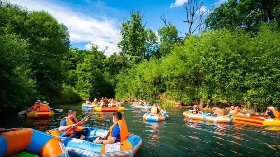 龙潭河风景区漂流是一处以自然生态和水上冒险活动为特色的旅游胜地,位于风景如画的山水之间。这里以其刺激的漂流项目和优美的自然环境吸引着众多游客,是寻求刺激与放松的理想之地。 景区内有十峰八潭,两岸绿树苍翠,风光无限美,漂流的弯道此起彼伏,偶尔水势湍急,十分刺激。游客可以乘坐皮筏艇,沿着蜿蜒的河道顺流而下,体验急流勇进的刺激与乐趣。在专业人员的指导下,游客不仅能确保安全,还能享受到水流带来的清凉与畅快。沿途的自然风光令人陶醉,两岸的青山绿水交织成一幅美丽的画卷,让人在冒险之余也能感受到大自然的宁静与美好。 龙潭河风景区漂流不仅提供了丰富的水上活动和自然体验,还为游客创造了一个远离城市喧嚣、亲近自然的空间。无论是寻求刺激的冒险者,还是希望放松身心的旅行者,这里都能带来难忘的体验和美好的回忆。