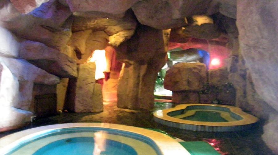 温泉位于酒店地下一层的汤乐宫,室内外共6500余平方米,汤乐宫温泉原生态造园为设计理念,步入其中便被自然景观所包围。汤乐宫拥有13间幽静的秘境汤苑和13个特色温泉池,其中包括溶洞水幕体验池,动感水道滑梯的温泉池,草本温泉池,儿童嬉水池等。