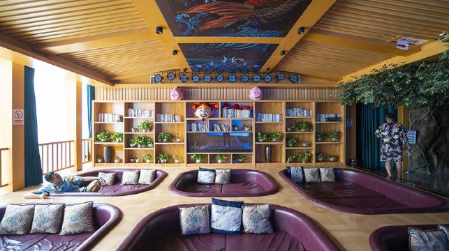 这里设有温泉洗浴、休闲休息区、网红书吧、 星空影院、儿童淘气堡、日韩餐饮、 足疗SPA、汗蒸房、茶吧配置于一体,打造出集餐饮、住宿、会议、休闲娱乐为一体的综合型温泉!