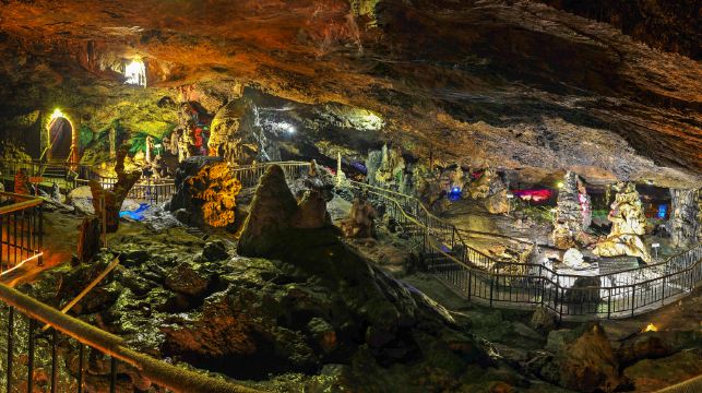 八仙洞位于丹江小三峡附近的东岸,为典型的喀斯特地貌,洞内大而神,洞中有洞,洞洞相连,一洞一景,石笋如林,钟乳倒挂,姿态万千,栩栩如生,使人如临仙境。相传八仙曾在此修行,洞内有聚仙厅、蓬莱阁、瑶琳仙境等景观。
