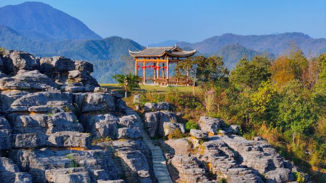 寒武纪石林景区位于黟县县城东南13公里处,距离世界文化遗产地西递景区仅5公里,是黟县独特的地质地貌自然景观,石林分布面积达32公顷(480亩)。 寒武纪石林景区在地质学上称为岩溶地貌,又称喀斯特地貌,整座山由无数奇峰异石构成,远眺宛如一条巨龙。石林的岩石以“瘦、皱、漏、透”为显著特征,极具美感。这些岩石与岩石之间,或相互连接延绵逶迤,连为石林;或一座座傲然伫立、形态各异,独为一景,让人感叹大自然鬼斧神工的神奇与美妙。 寒武纪石林景区除了有鬼斧神工的奇石,还有注入了“田园、花海”的元素,石林花海占地总面积为40000平方米,这里一年四季鲜花不断,形成震撼的花海主题。在这里,不同颜色不同品种的花卉种植在一起,形成色彩斑斓的彩虹花田,看上去赏心悦目非常有震撼力。寒武纪石林景区的花海以“花海石林、幸福随行”为主题,迎合当下年轻人的审美观。 同时,寒武纪石林景区也是开心乐园,高空管式滑道、极地滑车、高空玻璃水滑、拓展营地(含:彩虹滑道、丛林穿越、行军路线、平板滑梯、圆筒滑梯、钢滑滑梯、儿童攀岩、幸福天梯、网红迷宫)、亲子乐园(含:儿童蹦蹦云、亲子碰碰船、亲子碰碰球、儿童挖掘机、四人漂移翘翘板、彩色沙池、许愿树、小猪快跑、三维针雕)等众多娱乐设施,是皖南受欢迎的度假胜地。