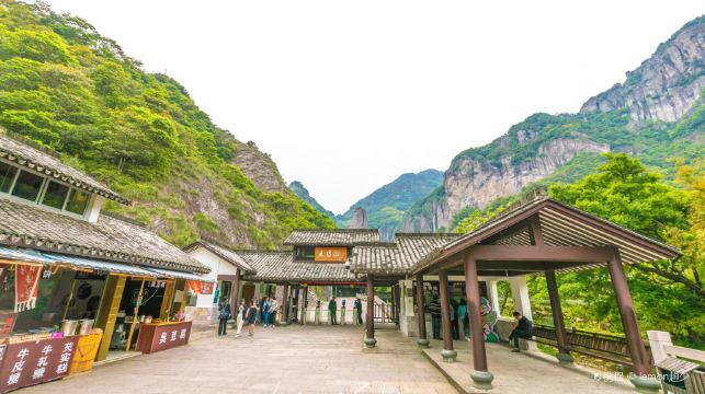 大龙湫景区无疑是雁荡山风景区内知名的景点,和灵峰、灵岩并称为“雁荡三绝”。景区中落差达197米的瀑布是中国知名气的瀑布之一。一般游客往往只游览景区中精华部分是大龙湫景区-剪刀峰-大龙湫瀑布这一段,看大龙湫景区-剪刀峰移步换景的奇妙景象,以及大龙湫景区壮观的瀑布景观。景区北面还有龙湫背、大龙湫景区-千佛岩等景观,若时间充裕可走走逛逛。“移步换景”的大龙湫景区-剪刀峰是大龙湫景区的重头戏,其它地方的象形石多是一块石头对应一个形象,而这块岩石却会随着观赏的角度不同呈现出不同的姿态。在售票亭外看大龙湫景区-剪刀峰,像鳄鱼,前行到竹桥旁,是观望大龙湫景区-剪刀峰的极好位置,远远看去两块山岩中间有一条裂隙,看起来像一把剪枝用的剪刀。随着脚步的前行,你会发现岩石的形象开始变得像少女,像啄木鸟,像狗熊,像船桅……十分神奇。景区在每个形象的观景点都设了指示牌,留意路边小牌子上的提示,便不会错过任何一个形象。当然,你也可以根据自己的想象来赋予它意义。大龙湫景区-剪刀峰后面就是大龙湫瀑布。它不像黄果树瀑布那样宽,以磅礴的气势取胜,而是细细的一条,从山崖上直直跌落下来,干脆利落。来大龙湫景区看瀑布,适宜的时候是在雨水多的季节,尤其是在下雨过后,此时瀑布水量大,才能真正感受到它一泻千里的壮阔气势。在干旱的季节,远远看去瀑布只有少得可怜的一点水流,让人心灰意冷。近观时,清澈的水潭和如丝如雾的瀑布,变成一种小家碧玉的美。也许是为了弥补旱季它给人们的期待与现实的反差,景区内每到整点便会上演一场空中骑车的杂技项目,演员在两峰之间的空中钢索上表演各种高难度动作,吸引的关注似乎并不亚于大龙湫瀑布本身。此外,下山路上有农家乐,可以在泉水上搭起桌子,双脚泡在冰凉的溪水中吃农家菜,在炎热的夏季无疑十分清凉的享受。