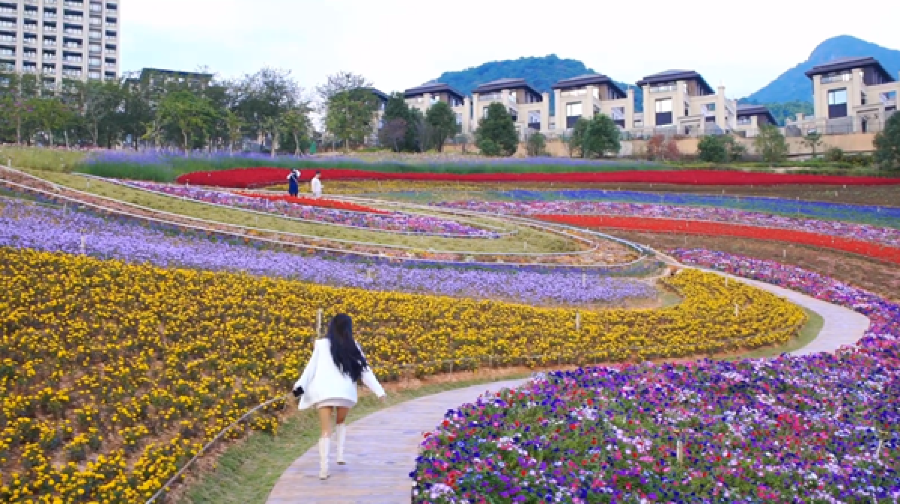 玛琪雅朵花海坐落在山重村仙灵旗山之巅,十里蓝山玛琪雅朵花海景致壮美,种植的各色草花、油菜花、三角梅、紫薇等花卉竞相开放,形成一望无际的色彩斑斓的风景线。玛琪雅朵花海以其富有浓郁欧洲风情的特有景观,为旅游文化重镇古山重注入了更为鲜活和丰富的文化内涵,当人们畅游花海俯身亲吻花香时, 得到的是田园生态美的视觉享受和清新鲜活的身心愉悦。
