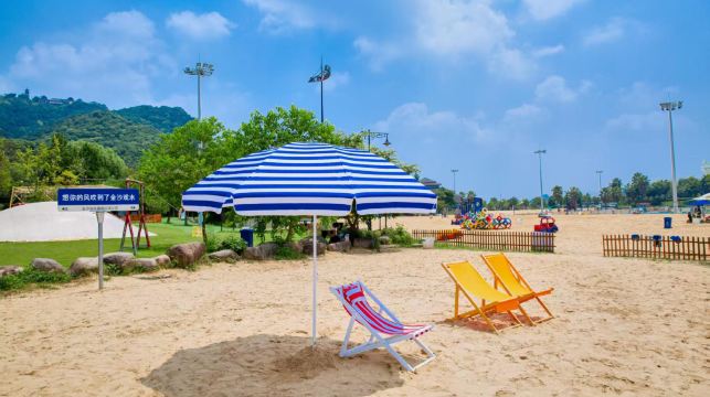 金沙戏水是长三角地区规模较大的以沙滩为主题的户外休闲公园,位于湘湖二期眉山景区,占地面积达34000平方米,由露天泳池、运动沙滩及水上乐园组合而成。露天泳池能够容纳2000余人,总面积近7000平方米,分儿童区、浅水区、深水区。