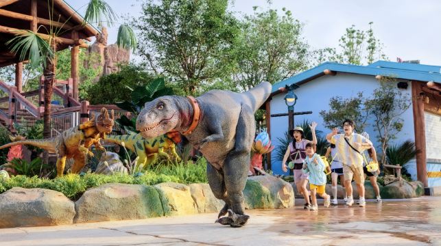 中华恐龙园是一座以恐龙文化为主题的大型游乐园,是一座集科普、游乐、演艺、住宿、购物于一体的一站式旅游度假区。有“东方侏罗纪”之称。园区现有七大主题区域、五十多个极限游乐项目、每天各种风格的主题演出。带领游客回到古老、神秘的侏罗纪时代。 作为园区的标志性建筑物,中华恐龙馆的馆体外形充分运用仿生建筑手法,远远望去仿佛三头恐龙高昂着龙头在窃窃私语,一条丰盈巨硕的恐龙躯体呈现出大写意的造型,由此勾勒出恐龙馆的博览、娱乐及科普空间。全馆总面积20000平方米以上,龙首最高处达71米,馆体穹顶最高处达36米。中华恐龙馆内设有五个主厅和六个辅助厅。其中主厅包括中庭、陈列厅、景观厅、观光厅和影视厅;辅助厅有入口大厅、贵宾接待厅、学术报告厅、备用展示厅及屋顶花园、纪念品售卖屋等空间。各厅通过逻辑路线,有发有合,互为关联。以生物演变史作为设计背景,重点突出恐龙从生存、繁衍、演化直至毁灭的构思主线,揭示了生命与环境相互依存,人类必须保护生态、保护环境的深刻主题。 园区分布: 恐龙园内分为中华恐龙馆、鲁布拉区、库克苏克大峡谷区、魔幻雨林区、梦幻庄园、冒险港、疯狂恐龙人。其中中华恐龙馆是展示恐龙文化的核心场馆;惊险刺激的机械游乐项目主要在“库克苏克”和“鲁布拉” 刺激的游乐项目: 众多高空机械游乐项目使这里成为寻求刺激的选择:你可坐上高空摇摆项目“疯狂火龙钻”,体验一把强烈的失重感;或是登上“通天塔”,寻求瞬间从空中急降的刺激;还有一套4D过山车,让你一秒内体验极速、飞转的快感。 轻松休闲的项目: 园内也有轻松休闲的项目,可以在中华恐龙馆中参观到多种中国系列的恐龙化石,在这里你会了解到恐龙文化。也可以参加不那么惊险的游乐项目,如“雷龙过山车”等,让你在微紧张中寻求欢乐;在不同的场馆还可观看音乐剧、魔幻剧和真人特技表演等节目。 水世界和夜公园: 恐龙园侏罗纪水世界带来整个夏日清凉的劲爽体验,经典的水上项目让你忘却整个夏日的炎热,酷爽的玩水体验让你尽情释放所有激情,热辣的演出点燃你身体的每一个细胞。让孩子们享受一个难忘的暑期。届时在晚上也可照样玩大部分的项目,更可体验水世界的巨型水滑道大喇叭、30米冲击大滑板的刺激,还可以在巨型水寨中展开戏水大战(水世界需另购门票)。