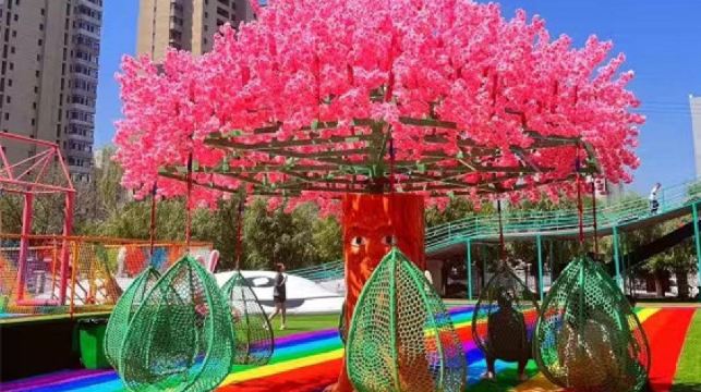 天津潮玩谷旅游度假区,坐落于天津市蓟州区穿芳峪镇毛家峪村,占地面积达107万平方米,总投资额1.35亿元,作为度假区概念综合性景区,以品质与差异化特色脱颖而出,引领旅游新风尚。 潮玩谷汇聚了超过30项时尚新潮的娱乐体验项目,精心策划,旨在满足不同游客群体的独特需求,无论是童心未泯的大人还是天真烂漫的孩子,都能在此找到属于自己的欢乐天地。 这里有纯木质魔法城堡巍峨耸立,仿佛穿越至童话世界;极速单轨滑车,带你体验风驰电掣般的刺激与快感;奇幻漂流穿梭于多元素场景之间,让人恍若置身于另一个时空;京津冀地区速降蹦极观光塔,挑战你的身心,俯瞰壮丽风景;采用3D打印技术打造的纯木质旋转木马,以天然木材精心雕琢,不仅环保健康,更以其独特的造型和温馨的旋转体验,为游乐场和家庭带来一抹自然与童趣的完美结合。 此外,潮玩谷打造了一处别具一格的圆盘状湖面天空之境。这处奇观犹如一块巨大的天然镜面镶嵌于翠绿之间,当阳光洒落,湖面波光粼粼,与蓝天白云、周围景致相互映照,形成一幅幅令人心旷神怡的画面;UTV丛林越野项目,则是年轻探险者的喜爱,穿越丛林,释放激情;星际太空风格独立民宿舱,则为追求独特住宿体验的游客提供了理想之选,仿佛置身于浩瀚宇宙之中。 不仅如此,潮玩谷还拥有占地200亩的绚丽花海,四季更迭,色彩斑斓,是摄影爱好者的天堂;更有多个网红打卡点,让你轻松拍出刷爆朋友圈的美照。这里,每一处都是风景,每一刻都值得珍藏,让游客在繁忙的都市生活之外,找到一片宁静致远的放松之地,全方位体验不同乐趣与风情。 园区有潮玩互动区和生态场景区两个分区,每个分区都有不同的游乐项目,带给游客不同的体验。以下是不同项目的详细介绍: 1、潮玩互动区 奇幻漂流:融合高山之险、溶洞之谜、河道之韵与梦幻魔毯之旅,打造综合性奇幻体验。该项目依托山谷独特地理,首开北方先河,集急流、缓流、戏水及多元奇幻场景于一体,引领漂流新潮。它不仅是休闲娱乐的享受,更是心灵的洗礼,让游客在刺激与乐趣间,领略自然奇观与奇幻魅力。水质清澈,流速适宜,成为夏日嬉水理想之选,安全设计确保无忧畅游。 魔法城堡:由纯木质打造的城堡,占地达1500平方,每一处细节都透露出匠人的精湛技艺与对奇幻世界的深刻理解,它矗立在那里,成为了一个令人叹为观止的景象。城堡内,令人瞩目的莫过于那超长超高的管道滑梯,它们蜿蜒曲折,如同通往未知世界的神秘通道,挑战着每一位勇者的极限。而城堡的心脏地带,一座高达22米的中央塔巍然耸立,它不仅是城堡的制高点,更是勇气与智慧的试炼场。 在这里,每一个孩子都将化身为小小探险家,被鼓励运用自己的智慧解开谜题,以无畏的冒险精神攀登高峰,用勇敢的心去迎接每一个挑战。城堡不仅为孩子们打造了一个身临其境的冒险场景,更是一个寓教于乐的成长乐园,让他们在欢笑与探索中学会坚持、勇敢与创新。 观光速降蹦极塔:我们独具匠心,精心设计了四叶草形状的玻璃观光平台,其高度傲视群峰,直达30米高空。游客可悠然乘坐电梯,轻松抵达这一梦幻之境,既满足了对极限挑战的无尽向往,又能悠然自得地俯瞰脚下绵延不绝的山谷美景,感受大自然的壮阔与细腻并存。 逐风飞索:滑索项目,长达1000米的距离,伴随着50米的惊人落差,它是一项集挑战性、刺激感与趣味性于一身的现代娱乐新宠。 当您踏上这段非凡旅程,将利用自然赋予的高度差,从巍峨的山巅疾驰而下,如同驾驭着风的力量,穿越幽深的峡谷,每一次下滑都是对自我的超越,每一声呼啸都是对自由的赞歌。让您在享受速度的同时,也能在安全的怀抱中,体验到那份“惊心动魄”却又不失“悠然自得”的奇妙感觉。 速降蹦极:速降蹦极,被誉为“勇者初体验”的趣味蹦极新宠,巧妙地在传统蹦极的极限张力与纯粹自由落体的乐趣之间找到了完美的平衡点。它摒弃了传统蹦极中可能让部分人心生畏惧的过度紧绷感,转而以更加亲和而又不失挑战性的方式,让每一位参与者都能在安全与刺激中自由翱翔,享受那份从高处跃下、心随风动的畅快与新奇。作为新兴的网红蹦极项目,速降蹦极正以其独特的魅力,吸引着众多勇敢者前来尝试,共同探索高空中的无限可能。 天空之境:悠然悬浮于马来西亚杰出设计师设计的的和平鸽形湖面之上,一座由精工锻造的钢化玻璃构筑而成的巨大镜域,宛如自然界的魔法镜,轻轻捕捉着天穹的蔚蓝与云朵的悠游,将其无瑕景致倒映其中。这不仅仅是一面镜子,更是自然与创意完美融合的桥梁,让天空与水面在此交织成一幅无垠的画卷,水天一色,难辨虚实,营造出一种超越现实的梦幻奇境,令人心旷神怡,流连忘返。 魔法旋转木马:将3D打印技术与自然木质元素巧妙结合的旋转木马,创新性地为孩子们编织了一个奇幻快乐的天地,其缓缓旋转间,不仅激发孩子们的无限想象,也温柔地唤醒了成年人心中对纯真童年的深深眷恋。它是连接过去与现在的情感纽带,让每一次乘坐都成为一次心灵的穿越,重温那些简单而美好的日子。 冒险岛:以游客自身的动力与活力为引擎,驱动一系列趣味横生的游乐设施。乐园巧妙融入多项亲子协作游戏,不仅考验着家庭成员间的默契与配合,更在轻松愉快的氛围中,悄然拉近了心与心的距离,加深了亲子之间的情感交流,让每一次共同挑战都成为增进家庭亲密关