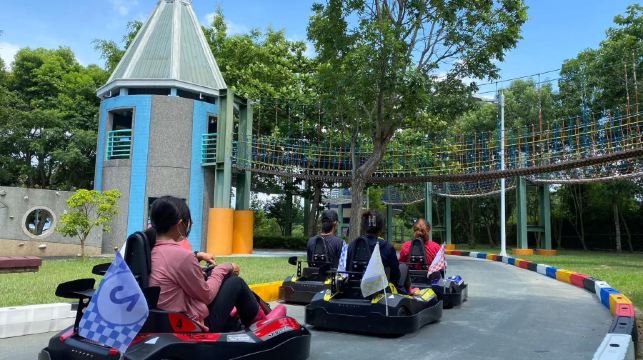 充满速度与激情的亲子卡丁车、绳网联结的丛林漫步、浪花阵阵的水世界……漫步园区,游客们或在水中嬉闹,或在攀爬挑战,玩得不亦乐乎。