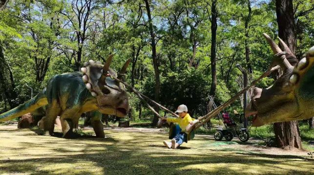 新宁县锦绣恐龙乐园是一个以恐龙主题为特色的独立大型乐园,坐落在美丽的崀山脚下、夫夷江畔,紧邻舜皇里文化旅游产业园。该乐园占地40余亩,以恐龙主题为核心,设有恐龙知识展示区和主题活动体验区,提供了17个机械动力项目和30个游乐体育设施项目。此外,乐园内还设有餐饮、购物、休息等丰富的人文服务设施,以满足游客的多样化需求。再者锦绣恐龙乐园还积极举办各种主题活动和表演,为游客带来精彩纷呈的娱乐体验。总之锦绣恐龙乐园的建成不仅丰富了新宁县的文化旅游业态,填补了文化游乐产业的空白,有效促进了新宁县文化旅游产业的高质量发展,而且成为了崀山旅游的新引擎,为县域经济的发展注入了新的活力。