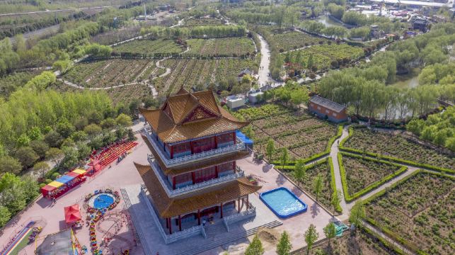 中国牡丹园现已栽植牡丹芍药品种900余个,200余万株。其中赵粉,东方金、首案红、芍药牡丹等为珍贵稀有品种;同时又栽植了薰衣草60万株,菊花20万株,红枫3000棵,确保一年四季有花看。园内一期已建设古韵商业街、观花楼、三仙庙、百年牡丹园、品种芍药保护基地、采摘园等。为了更好的完善园区景点设施,服务更多的游客,园内二期即将建设度假酒店、养生社区、奇珍博物馆、曹州名人馆、曹州文化馆、游乐场、动物园等项目。2015年至今中国牡丹园分别承办了菏泽首届和第二届菊香文化艺术节、菏泽第25届牡丹文化旅游节、菏泽首届梦幻光影节、两岸三地美食节、泼水节、魅影狂欢节、曹州首届文化大庙会等活动。