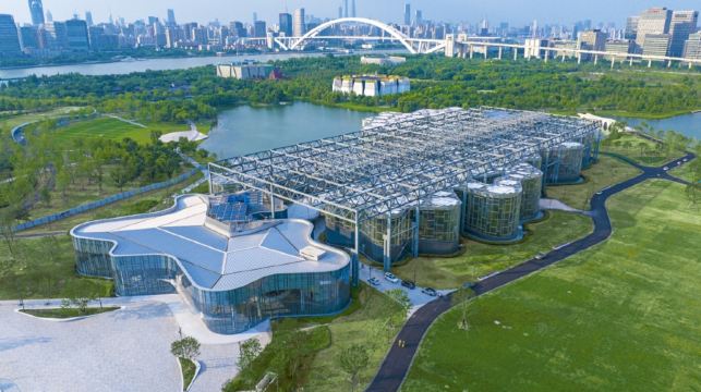 上海温室花园位于上海世博文化公园中心位置,紧邻中心湖,背靠双子山,占地约2.2万平方米,地上地下总建筑面积约4万平方米,是集观赏游览、休闲娱乐为一体的多功能综合体。外形设计通过对原上钢三厂老厂房的改造利用,把历史记忆和现代元素结合在一起,形成自然优雅的云状曲线。上海温室花园有4个场馆,由空中连廊、工业桁架相互连接成一个整体,其中4个场馆是游服中心1个,主题场馆3个。3个主题场馆分别是海市沙洲(1号馆)、云上森林(2号馆)、云雾峡谷(3号馆)。3大主题场馆空间以变异的叶、会呼吸的根和空中的花为故事线,分别展示热带干旱植物、热带雨林植物与热带花卉植物。同时,展示形式上力求表现植物到博物+文化的延展,从而打造好看、好玩的沉浸式展览温室。上海温室花园夜游项目已正式上线,邀您解锁夜游新体验,探索植物王国的夜间奥秘。