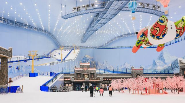 成都热雪奇迹 成都热雪奇迹总建筑面积8.08万㎡,为全球滑雪爱好者配备了7条不同等级的雪道和2个地形公园,雪道总长度1200米,最大落差60米,最大坡度21°,全天最多可接待7000人滑雪。成都热雪奇迹首创藏羌冰雪主题,拥有1.3万吨超大造雪量,为游客提供雪圈旋转机、冰上碰碰车等十余项全家共享的娱雪游乐项目。此外,成都热雪奇迹运营期将开设热雪奇迹体育滑雪训练中心,举办世界滑雪赛事,全面助力国家冰雪运动发展,为中国家庭创造一个真冰真雪,四季恒温,“全龄段、全年度、全天候“的世界冰雪乐园。 雪道按体验者滑雪专业度分为初、中、高级7条雪道,地形公园2个。七条雪道: 1,儿童道一条:长 45m,宽 30m,坡度6°; 2,初级道三条:(熊猫道2条):长 75m,坡度为8°,适合初学者年纪较小的滑雪者练习;小熊道单板道1条:长170m,宽 60m,坡度为8°,适合初学者滑行提升练习; 3,中级道二条:(雪兔道):长 160m,宽 45m,坡度为10°,雪道适合中级技术的滑雪者进行提升训练;(麋鹿道):长 380m,坡度为12°,可设置为高山类回转项目赛(大回转、小回转、技术大赛等); 4,高级道一条(老虎道):长 300m,坡度为21°,可设置为技巧类赛道(跳台、障碍类比赛)。 地形公园两个:初级地形公园:长 150m,宽 20m,坡度约为8°,可设置为单、双板技巧类赛道:中、高级地形公园: 长 210m,宽约 20m,坡度 21°,可设置为高空技巧类赛道。 概述: 成都热雪奇迹总建筑面积8.08万㎡ 拥有1200米雪道总长度,60米最大落差,7条世界滑雪赛道,2个地形公园 超级雪道配置,任你尽享飞驰快感 满足从初学者到发烧友的全面需求 专业级热雪奇迹体育滑雪训练中心 点燃你驭雪飞驰的冰雪梦想 全球首创藏羌主题娱雪乐园 带你在川西风情中感受满天飞雪的冰雪秘境 给你不一样的梦幻体验 四季不打烊的无限欢乐 绝的夏日网红打卡新地标 接下来,让我们一起换上炫酷的滑雪服,在冰雪世界自由驰骋吧! 成都热雪奇迹 专业级的滑雪胜地 全家人的娱雪乐园 造北国的雪,圆南方的梦 成都热雪奇迹 许你一个四季不融的冰雪绮梦