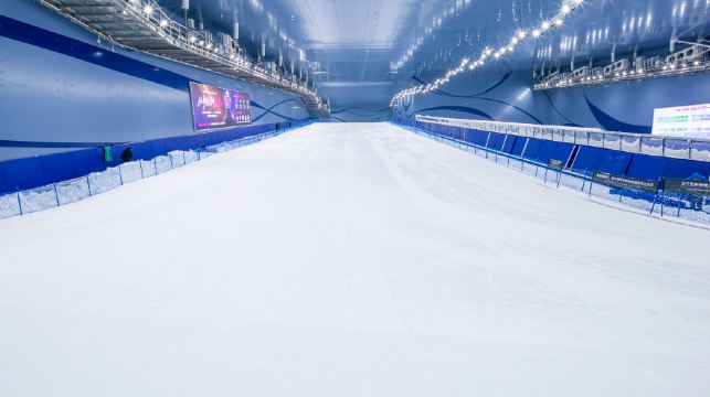 思达冰雪世界引用澳大利亚先进室内造雪技术,滑雪馆内制造出的雪地,既超越了3D模拟滑雪游戏装置的游戏性质,又突破了传统旱雪受场地制约的条件限制,相比室外滑雪有更高的安全系数,能更快地提升效率。且采用先进的仿真飘雪技术,可24小时模拟真飘雪,雪质几乎达到自然飘雪的状态。内部将通过巨形喷绘灯光天棚模仿蓝天白云的天空效果,结合雪山、森林营造出天然滑雪场的氛围。游人在这里不仅可以赏雪、玩雪、滑雪,休息时,还可以观赏到精彩的专业滑雪表演。门厅是滑雪馆的第一空间。“风”、“雪”演绎的造型在墙面及顶面的诠释,使得游客一进入此空间就有一种运动的欲望。