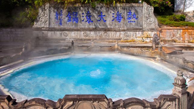 腾冲热海风景区俗称热海,位于腾冲县城西南部清水乡,距离腾冲县城约10公里。景区内气泉、温泉群共有80余处,其中10个温泉群的水温达90℃以上,到处都可以看到热泉在呼呼喷涌,景区内雾气氤氲。热海温泉水质软、温度高。 踏进景区,吸引人的是“热海大滚锅”,这是一个圆形温泉池,水温约96度,断不可贸然入水,看看就好。池边有当地人售卖用大滚锅煮出来的鸡蛋,用稻草串成一串,一般5元一只,可以尝尝。沿着景区内的环形步道慢慢前行,沿途会看到超多热气喷涌的泉眼,腾冲市热海风景区-怀胎井、眼镜泉、珍珠泉、鼓鸣泉、狮子头、蛤蟆嘴……无不形态各异,泉如其名。值得注意的是:泉水热度很高,切记不要随便触碰,以免烫伤。 景区目前开放有两处泡温泉的地方:热海浴谷温泉和美女池温泉,都需要另行收费。热海浴谷温泉内有露天和半露天的温泉池20多个,根据泉水的添加物又分很多特色池,用香柏木泡制的香柏池;融入云南小粒咖啡的咖啡池;甚至还有含有一定比例酒曲的酒池。美女池温泉又名仙人澡堂,由三股泉流汇聚而成,位于泉华群下,有3个露天泡池、4个岩洞泡池和一个大游泳池,是天然的SPA乐园,每个池子的水质、水温都不一样。景区入口处有一家“大滚锅食府”,也是景区的餐厅。点一碗热海特有的“大滚锅饵丝”,吃的是饵丝,感受的其实是热海的文化和历史。 如果感觉意犹未尽,也可以在景区内住宿一晚。景区内有多个酒店可以选择。