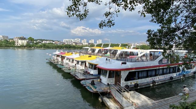 桂林十大名山水上游(桂林市区水上游)是漓江百里画廊的一部分,南起斗鸡山龙船坪码头,北至叠彩山刘三姐对歌台,游程约九十分钟左右,沿江可欣赏到“南溪新霁”、“穿山塔影”、“象山水月”、“北斗七星”、“伏波胜境”、“叠彩和风”等十几个景点;风景秀丽,景在城中、城在景中、景中有城、城中有景;汇集了桂林山水之精华;在这时有大小豪华空调游船四十多艘,一千多客位,年接待能力超过一百万人次,游船将带您体验仙境般的自然风光;清清漓江水、悠悠桂林情,您将会置身于画廊之中,流连忘返。