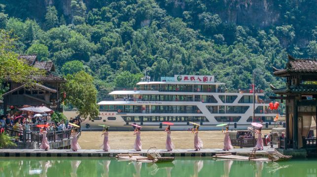 早上8:00宜昌交运集团黄柏河码头换票登船; 9点左右开船,船上途观万里长江第一坝--【葛洲坝水利枢纽工程全貌】,尽揽世界旅游风景区长江三峡精华段核心区--【西陵峡风景区原始峡谷风光】,船上途观三游古洞、张飞擂鼓台、长江三峡入峡口南津关、仙人溪、黄猫峡、灯影峡、天下第一湾-----明月湾; 10点20左右抵达长江三峡美丽的地方---“三峡人家”风景区----游览中国首创原生态、场景式、体验型、国家5A级民俗旅游区-----“三峡人家”,乘索道或电梯上山(自费30元/人),登巴王寨-邀月亭、眺明月湾;游巴王宫再现洪荒时代战争与爱情的传说;访民俗文化村、感受峡江居民的质朴生活;探幽深梦幻的灯影洞;午餐后在幺妹子的山歌和纤夫的号子声中感受峡江原住民的生活形态,观看今日水上人家,溪边人家,土家吊脚楼边看婚嫁表演,参与抛绣球活动,做一回土家人的女婿,在欢快的鼓声中乐不思蜀; 下午16:00开船,约一小时返回至宜昌交运集团黄柏河码头散团,结束愉快行程!!