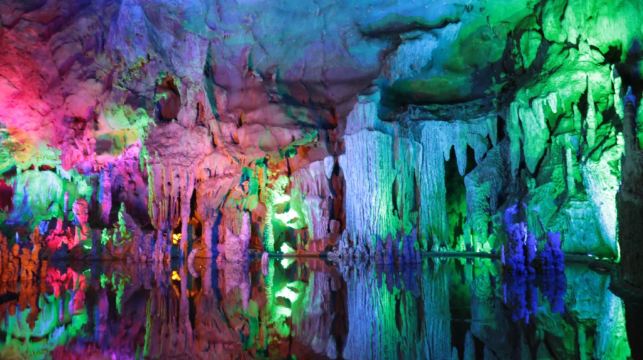 聚龙潭是位于十里画廊沿线的景点,是阳朔境内可以“一洞水陆两游”的地方。在洞头,游客可坐游船经地下进入洞内,然后步行参观钟乳石奇景,可以见到“杨贵妃仙浴”、“海上明月”、“水晶龙宫”等经典景观。 聚龙潭位于古榕公园、月亮山之间,由黑岩和水岩两大岩洞组成,洞内穹顶高处约25米。洞内有许多钟乳石看起来很象“龙”,有卧龙、盘龙、游龙、飞龙、金龙、玉龙、龙王、龙女等等,形态惟妙惟肖,而“聚龙潭”的名称也由此而来。 聚龙潭内景点密集,还有诸如龙女迎宾、孔雀开屏、月宫桂树、银河奇峰、蟠桃盛会、龙宫玉柱、贵妃出浴、聚龙潭-石林奇观、海上明月、聚龙潭-海市蜃楼、滴水观音、蓬莱仙岛等景观奇特的钟乳石群,令人大饱眼福。