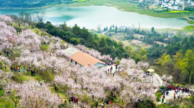 沼山古村桃乡景区被誉为"湖北小婺源"。景区背倚连绵沼山,面朝清幽溪谷,以万亩桃林和百年古村刘通湾为核心景观,拥有"九古奇村"之美誉——古树、古墓、古井、古祠、古碑、古道、古沟渠、古宅、古碾等历史遗存遍布村落。春季桃花盛开时,漫山遍野绯红如云,吸引数十万游客前来踏青赏花;夏季水蜜桃成熟,果实饱满多汁,可体验采摘乐趣。沼山古村桃乡景区,位于湖北省大冶市保安镇沼山村,地处黄石、鄂州、咸宁三市交界地带。总面积约7.5平方公里,核心区面积约3.5平方公里,以沼山湖为核心,涵盖刘通湾等12个传统村湾。以万亩桃林与千亩油菜花田交织的田园风光为基底,深度融合桃文化、乡村旅游与沉浸式体验,是国家AAAA级旅游景区。自然风光秀丽,“沼山叠翠”为大冶八大胜景之一。 春季,万余亩桃林桃花盛开,构成“步步是景、处处有戏”的春日画卷。“桃花季”是景区最重要的节庆活动 主要景点包括刘通湾传统古村落、白马桥、桃里农场、桃花潭、桃花寨等。 景区注重“变废为景”的创新改造,将废弃鸡舍变为网红奶咖,废弃厂房改造为桃里农场,构建了“可游可憩可体验”的乡村旅游空间。大型沉浸式水上漫游实景演出《桃花源里》是景区的核心文旅IP。该演出以陶渊明《桃花源记》为灵感,在寂静的沼山水库上展开,分为春夏秋冬四大篇章,精心编排了16个演出场景。游客以乘船漫游的独特方式,沉浸式感受从春日飞花到冬日落雪的如诗画境。演出于每年3月底至11月上演,冬季休演,通常每晚19:30开始。常态化运营“桃乡江湖·白马剧场”等古风互动项目,并在刘通湾古街提供汉服换装、草木染非遗文化体验。
