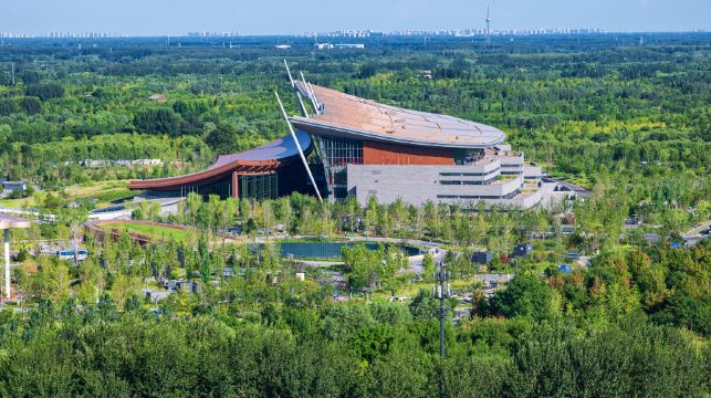 北京大运河博物馆坐落于北京城市副中心城市绿心西北部,总建筑面积约9.97万平方米,由共享大厅、展陈大楼(主楼)和休闲水街共同组成。博物馆建设设计理念源于古运河图景中的船、帆、水三个元素,以运河为线索,将历史文化融入建筑之中。共享大厅屋顶造型取自“船”,展陈大楼(主楼)屋顶造型取自“帆”。两座建筑之间的休闲水街,与展陈大楼(主楼)立面的街巷路口、篷架、门楼等元素相结合,形成一处类似于运河驳岸码头的场景。除此以外北京大运河博物馆(首都博物馆东馆)的标志以“千年大运河,流动的文化”为核心设计理念。大运河是一条承载着密集中国文化基因的大动脉,标志以“京运龙印、风帆舟楫、绵延水纹”为核心图形元素,多义共生,将中国传统文化要素中的大运河主题用生动、巧妙的视觉语言进行融合创新设计,擦亮大运河“文化名片”,打造博物馆新文化地标品牌,加强千年运河文化品牌的形象传播,向世界讲好大运河故事。