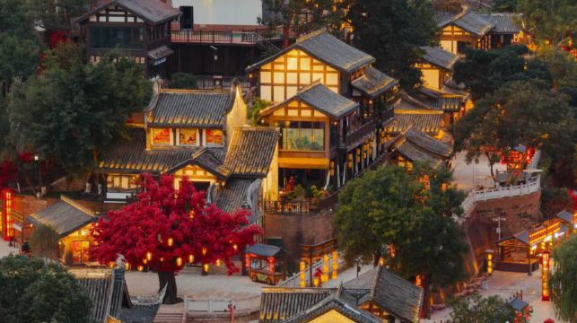 龙吟天城影视文旅小镇坐落于成都市金堂县五凤溪景区,地处龙泉山脉中段东麓,依沱江而建。作为成都影游联动沉浸式文旅项目,小镇以热播剧《水龙吟》IP为核心,打造"沉浸式古玄侠特色旅游目的地"。其宣传语"三千界不醒 一梦水龙吟"生动诠释了项目的玄侠意境。创新构建"真实游戏世界",将剧中高武低魔世界观与古蜀文化完美融合。游客可自由探索四大门派:中原剑会复刻剑王城宏伟景观,香巴拉充满藏地神秘色彩,飘零梅苑以傩舞传功为特色,风流店注重音律互动。场景设计极具匠心,水上画舫还原唐俪辞同款座驾,三千台阶再现剧中剑王城楼梯,万红神树展示红色嘉兰,琼台舞台模拟夜宴场景。夜间亮化系统覆盖河道、码头及音乐舞台,营造出"景即是戏"的沉浸氛围。科技赋能体验,服化道展厅陈列原剧服装道具,VR数字展厅重现重要场景,换装服务中心打造古风造型,小程序系统支持线上任务接取和积分排行。游客可选择基础门票体验实景演艺和展厅参观,或升级体验门票享受换装道具和剧情互动。门派互动游戏精彩纷呈:中原剑会设置拜师礼扇子回旋游戏和剑意对决摔方宝;香巴拉推出除心魔敏捷考验;飘零梅苑的傀面梦魇采用明星同款面具记忆游戏;风流店则打造音杀功音感挑战。所有游戏道具均精心设计,确保原汁原味的剧情还原。大型演艺活动轮番上演,画舫区《江湖宴·以身入局》、琼台区《门派终局》、风流店舞台日夜场表演各具特色。龙吟巡游汇聚众多NPC与游客互动,创造零距离江湖体验。副本任务丰富多样,诗句碎片寻找、臂力挑战、押镖劫镖游戏等充满随机趣味。押镖游戏中玩家组队运镖,结合五子棋、谐音梗等过关游戏影响剧情发展。国风市集汇聚非遗体验、汉服巡游、传统美食和手工作坊,定期举办主题活动和快闪演出。项目根据剧集播出节点策划特色活动,开业主题"龙吟惊四海,礼敬叩八荒"系列活动深受游客喜爱。龙吟天城以高自由度叙事沙盒设计打破传统文旅边界,融合影视IP、科技互动与自然山水,打造持续运行的玄侠平行宇宙。每一次游览都充满独特惊喜,是古风爱好者和影视迷不可错过的沉浸式体验胜地。
