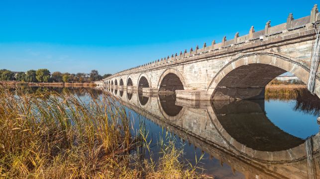 卢沟桥全长266.5米,走完不过10分钟时间,却跨越了800多年的历史。桥上雕刻精美的石狮子让马可·波罗赞不绝口,你也可以来这里细细品味。 卢沟桥的石狮子姿态各不相同。狮子有雌雄之分,雌的戏小狮,雄的弄绣球。有的大狮子身上,雕刻了许多小狮,较小的只有几厘米长,有的只露半个头,一张嘴。因此,长期以来有"卢沟桥的狮子数不清"的说法,你也可以来这里数一数。 明清时期,“卢沟晓月”是北京有名的“燕京八景”之一。如果你是中秋节前后来,可以关注景区每年举办的赏月活动 ,卢沟桥的东端就是宛平城,城内的雕塑园、石鼓园等景点也可以参观。
