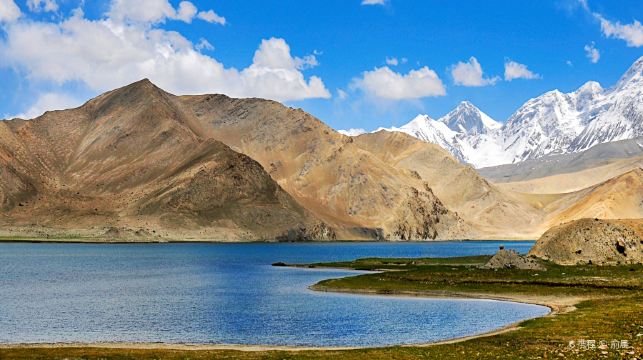 喀拉库勒湖景区位于“冰川之父”幕士塔格峰脚下,因湖水深邃幽黯,故名“喀拉库勒”,柯尔克孜语意为黑湖。湖前是一片广阔的草原,春夏季节,草原上牛羊成群,湖面水鸟、野鸭游弋,偶尔还有天鹅在此觅食。湖水在阳光的照耀下,流光溢彩,倒映着雄伟的幕士塔格峰,绚丽异常。有传说此湖中有水怪出没,当然真假不得而知,因为毕竟谁也没看到过。湖水在一天当中会随着阳光的照耀而变幻不同的色彩。平时,湖水洁净碧清,洁如明镜;当乌云密布之时,湖水则会像灌进了墨水一样,变得乌黑,成为名副其实的“黑湖”。每当清晨日出时,这浮光潋滟的湖水,又像舞台上的天幕一样,不断变幻着:时而湛蓝,时而淡黄,时而桔红,给人以置身仙境的感觉。
