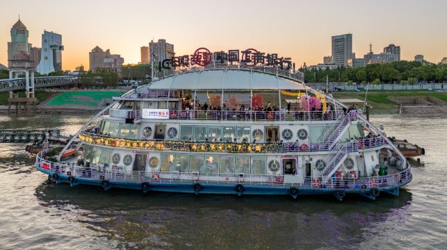 来到武汉,如果不去江滩吹吹风,好好欣赏一番江边美景,似乎都对不起“江城”这个名号。而登上船长9号游船,你更能徜徉在长江上,以全新的视角,遥望车水马龙的城市夜色,领略江城的另一面风情。 游船从武汉港23号码头发船,沿途经过西安舰、禹功矶、晴川阁、长江一桥、汉阳江滩、黄鹤楼、武昌江滩、江汉二桥、粤汉码头等多个城市地标。这些被霓虹灯点亮的地标建筑,在潺潺江水和粼粼波光的映衬下,又散发出另一番风情,带给你与白天截然不同的新奇感受。 “船长9号”以著名科幻动画《太空堡垒》中的巨型太空战舰为设计蓝本,外形独特,充满了科幻色彩。船体分为三层,内设超大多功能厅、270°贵宾观景厅和VIP宴会厅,还有360°观景阳光甲板,配置豪华。船上还有自助餐可选,琳琅满目的饕餮美食可以让你大胆尝试新鲜口味,满足你的味蕾。