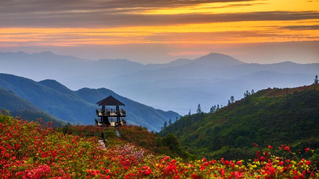 大围山国家森林公园位于湖南省长沙市浏阳市东部,地处湘赣交界处,总面积约10万亩。它是一个以自然生态景观为特色,集生态保护、休闲度假、科普教育等功能于一体的国家级森林公园。公园内树木茂盛,空气极其的清新,是一个洗肺的好地方。春天有樱花和杜鹃;夏天来这里漂流避暑,体验野外露营;秋高气爽的时候,来这里逛逛七星岭,观赏日出和晚霞;冬天这里有中南地区人气户外滑雪场。