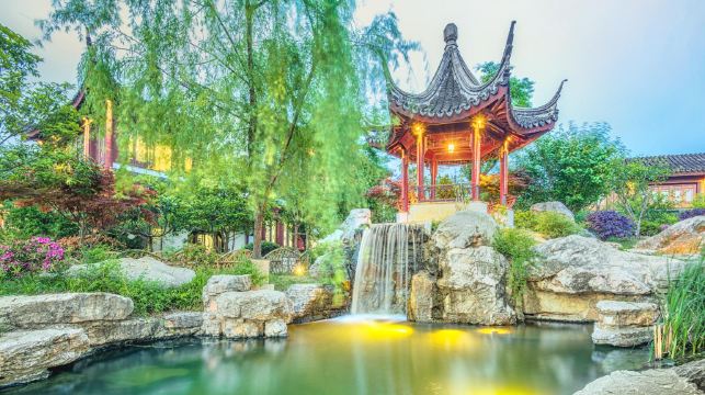 “沙洲优黄”有着120年的历史,知名黄酒品牌,依托得天独厚江南水乡资源和深厚积淀的黄酒文化,文化园集文化、研发、休闲于一体的工业旅游地,讲述酒的故事。走进中华门,上千根金色方形钢管组成抽象的古建庑殿顶式样,穿梭时光之门,走进沙洲的酒世界。走过名为“千泉”的叠水池,仿佛置身沙洲优黄存酒仓库,1724口酒坛双侧堆叠为九层,倾倒甘醴,水声袅袅诉说着沙洲的百年历史