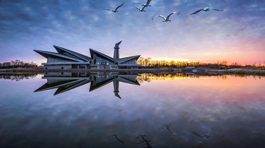盐城丹顶鹤湿地生态旅游区位于盐城市亭湖区境内,占地16000亩,隶属于江苏盐城国家珍禽自然保护区。旅游区自然风光秀美,有“黄海明珠,生态廊道”之美誉,是盐城市新十景之一。旅游区先后创建成为江苏省科普教育基地、江苏省生态旅游示范区、国家环保科普基地、国家生态环境科普基地、全国林草科普基地、国家青少年自然教育绿色营地、国家AAAA级旅游景区、2019年纳入世界自然遗产地。 自建区以来,丹顶鹤湿地生态旅游区立足盐城滩涂湿地自然景观和丰富的鹤文化资源两大优势,以丹顶鹤文化中的吉祥、爱情和长寿为主线,重点打造湿地观光游、生态观鸟游、研学科普游等主题旅游,全面展示人与自然的和谐美好。步入旅游区,这里蒿红似血,苇绿如玉;这里小桥流水,鱼跃虾戏;这里鸳鸯对舞,天鹅争鸣;这里仙鹤迁飞,万鸟翔集;置身其中,犹如仙境。旅游区里有一首歌《一个真实的故事》传唱大江南北,讲述的是徐秀娟烈士的动人事迹,她为了救护两只飞失的天鹅,不幸溺水牺牲,年仅23岁的她化身为“鹤仙子”永远保护着这方净土和鸟儿,她用生命捍卫了生态文明,被时代永远铭记。 园区内有景点:丹顶鹤博物馆、水禽湖、丹顶鹤救护繁育中心、珍禽园、生态眼、柳林鹭踪等