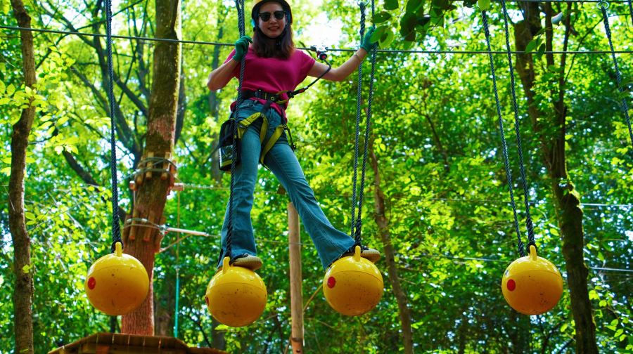 重庆飞跃森林探险乐园是法国ALTUS公司在中国建设的项目非常齐全的树上冒险运动基地。“飞跃森林”是一项与自然充分接触的户外活动,它集冒险、运动、娱乐、挑战于一体,汇集了高空、速度、力量、毅力等户外探险所需要的元素,是一项有趣、减压、极具挑战性的世界户外运动。它以高空绳索探险为主题,依托自然树木或桩柱,通过搭建各种趣味十足的木桥、交叉路段、滑索等障碍关卡,在不间断生命线系统的保护下,体验者从一个平台穿越到另一个平台,进行高空闯关。整个项目从地勘设计到安装,严格按照欧盟EN15567标准进行建设和检验。所有设计及安装施工均由经验丰富的欧洲技术人员执行。所有材料包括钢丝绳、绳网及五金件均由欧洲进口。全部关卡使用欧洲松木,经过特殊防腐处理,渗透木材,保障了整个项目的质量和使用寿命。项目完成经第三方国际权威专业机构检测,完全符合欧盟EN15567标准。并获得欧盟安全认证,确保每一位游客都能在安全无忧的环境中享受探险。飞跃森林探险乐园适合3-60岁各种不同需求的群体,有专为儿童设计的线路,让孩子在获得快乐体验感的同时,提高意志力、执行力、判断力;有针对缺乏体育锻炼,身体处于亚健康状态人群而打造的健身线路;更有针对户外极限运动爱好者设计的高难度挑战线路。所有体验线路以颜色区分难易等级,适合3-60岁各种不同需求的群体,不仅是广大户外运动爱好者的休闲娱乐地,对于单位团建,研学教育,生日聚会,单身派对,或者共度亲情时光,这项运动都是非常适合的理想选择。世界的树上乐园、中国的飞跃森林!我们期待与您一起,飞跃森林、探索未知、挑战自我、享受自然!
