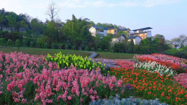 天坪山云林天乡花海位于重庆市巴南区二圣镇天坪山上,景区面积约40平方公里,山顶平坦开阔,山边悬崖峭壁,四周群山逶迤,风景区内自然植被良好,空气清新,风景独特,是主城近郊难得的天然氧吧和休闲养生养心之地。