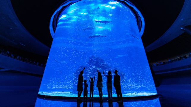 小梅沙海洋世界项目用地面积约6.02万㎡,总建筑面积 约13.25万㎡ ,其中地上建筑面积约9.4万㎡ ,两层地下室建筑面积约5万㎡ 。 由海洋馆、鲸豚馆、欢乐剧场及海狮混养馆、游客服务中心、展示服务中心共5栋建筑组合而成。景区拥有陆生动物、鳍脚类、鲸豚类、鱼类等约200多种稀有名贵动生物。 以海洋动物展示、科技演艺、多媒体互动科普为主题,致力于营造亲近 自然、幸福亲子的欢乐主题氛围。新馆总水量约4万吨, 设有展示缸体74个,展示水量达2万吨,多个缸体超千吨,其中仅大洋池单个缸体已达4700吨。 新馆落成后总水体量将位列国内知名海洋动物展馆前十。全馆内外多处使用高精尖多媒体科技技术,融合海洋文化、海洋科技等理念,提供沉浸式游园体验。 声光电多元科技展示, 助力主题娱乐,信息化全面提升游客体验,满足细分市场客户需求,创造多样性娱乐场景。打造全新海洋主题园区娱乐模式。 这里新推出的华南机甲(仿生)鲸鲨,让游客近距离体验海洋巨兽的魅力,同时探索仿生技术和人工智能的结合。这款机甲(仿生)鲸鲨集成了3D打印、一体化水下电机、仿生咬合机构等27项专利,展现了创新和技术实力。它不仅激发了学生对科技和海洋的兴趣,还通过替代活体鲸鲨,减少了对野生动物的干扰。此外,其低能耗设计每天仅耗电3度,年电费约1千多元,远低于活体鲸鲨的饲养成本,体现了环保理念。同时,机甲(仿生)鲸鲨还能收集关键海洋数据,助力科学家研究和保护海洋生态系统。