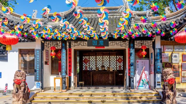闻道园位于罗店镇东北角,是一处以保护农村古建筑为主的文化休闲园。里面有从安徽等地拆搬过来的徽派建筑,还收藏了不少珍贵的奇石,同时配有餐厅和会所。由于离市区较远,来到这儿的游客多是闲暇时候来散心,或者宴会聚餐。景区内的主要景点集中在大门左手边,不过通常会从右边绕过去,沿路可欣赏闻道园中的园林景观。走过八卦荷花池,再往前不远便是奇石馆,这里是整个闻道园值得一看的地方,里面有一桌满汉全席,一大桌石头菜让人垂涎欲滴;一大块据说价值过亿的和田玉,是这儿的镇馆之宝。此外,还能看到一窝罕见的恐龙蛋化石,以及许多稀罕的宝贝,喜欢石头的游客不要错过。出奇石馆,过圣旨牌坊往前走便是徽派建筑群,徽州雕花楼、武状元楼等徽派建筑经过重建和改造焕然一新,配合着园中的小桥流水,别有一番风味。进士第被改造为闻道园酒家,四周为玻璃阳光房,可散点一些面条、馄饨之类的小食。