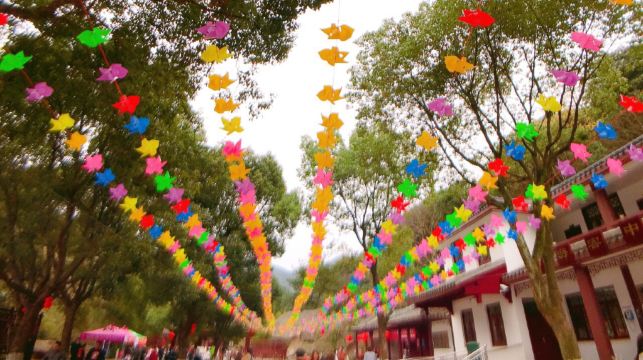 网岙景区属于九峰山旅游区的五个组成景区之一,由一条长达2600余米的峡谷贯穿,包括秀山丽景(入口景观区)、花溪漫游区、休闲活动区、龙潭祁雨区、石门飞虹区等众多景点。一进景区,先是一个炊烟四起的野外烧烤场,绕过烧烤场过卧龙桥,这里有祈雨坛和祈雨殿,是以前百姓为祈求风调雨顺而建,顺小道慢步,沿途绿树成荫、泉水潺潺,只见龙潭飞瀑如一挂银帘流泻于眼前。后登上松风茶庄,不仅可以歇息,还可在平台上还可仰视九峰之巅。