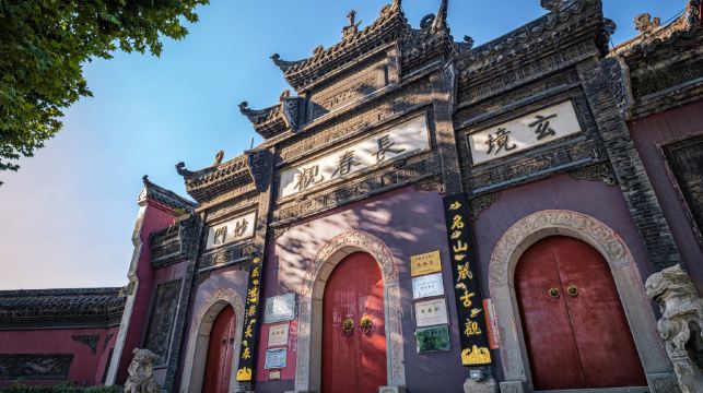 武汉的长春观,位于武昌大东门东北角双峰山的南坡,始建于元代,明永乐年间和清康熙年间(1661-1722年)再次重建,号称道教“江南一大福地”。观内崇奉的是道教“全真派”,以全真派创始人王重阳弟子邱处机的道号“长春子”命名,这位丘处机,就是金庸笔下著名的“丘道长”。 它坐北朝南,周边风景清幽,观内建筑依山而建,有左、中、右三路建筑,中路轴线上分布着道观的主体建筑,有官殿(山门)、长春观-太清殿、长春观-七真殿、会仙桥、长春观-三皇殿等,西路轴线上有吕祖殿、道藏阁等,东路则有甲子殿等。游览时,按照中轴线和观内的指示牌步行游玩即可。 长春观-七真殿是观中的主殿,里面有“长春子”丘处机和其他几位师兄弟的塑像,这些塑像的原型都在金庸先生的武侠小说《射雕》中出现过。除了主要建筑外,观内的“三绝”是游玩时不能错过的地方。 观内的宗仁堂门口的石壁上,镶嵌着“三绝”之一的《天文全景图》,图中有道教的“二十八星宿天图”,体现了道教思想中的天文学观念。在西路轴线上的道藏阁,也是“三绝”之一,以欧式建筑为主体的道教建筑。它的屋檐上有用水泥“堆塑”而成的传统花饰,这是因为清末道观“住持”侯永德原本是一名将领。还有“一绝”就是道藏阁前的乾隆皇帝亲书石刻“甘棠”二字,这是道教建筑中为数不多的帝王题词。 在西路轴线上的吕祖殿内有吕洞宾卧像和“五百灵官”塑像,是因修建长江大桥,而从黄鹤楼的原址上拆迁到这里。每年春节期间,这里还有庙会,期间客流量会增加不少。