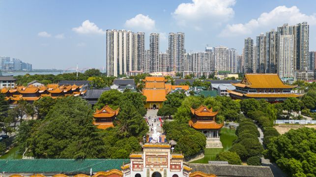 长沙香火非常旺的一座古寺,当地人经常来这里祈福,去观音殿内转观音像。古寺始建于五代时期(896-929年),现存建筑主要是清光绪年间重建。 古开福寺内的敬香和一般寺庙稍有不同,不是点香后插入香炉,而是将香直接扔到焚香炉中。在敬香广场后的中轴线上,分布着弥勒殿、大雄宝殿和古开福寺-毗卢殿,古开福寺-毗卢殿中有五百罗汉的塑像,有兴趣的游客可以在这里数数罗汉测吉凶。 在寺庙的东边,有新建的大悲殿,殿中央供奉着观音像和善财童子,在殿内的墙面上,挂着油彩观音菩萨八十四像。当地香客相信在殿内围绕着观音像转3圈或者7圈,就能够做到有求必应。 如果你在寺中游玩时,正好赶上饭点,不妨去斋堂(食堂)后面的厨房购买一份斋饭。