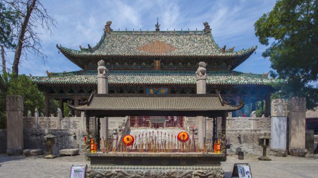 后土庙,是一处道教庙宇,位于介休县城西北角,为山西省重点文物保护单位之一。后土庙,是一处包括五进院落并配有楼台殿阁的庞大建筑群。这个建筑群里,有影壁、山门、过殿、东西廊房、三清楼、钟鼓楼、后大殿等。 后土庙内的主体建筑是三重檐十字歇山转顶结构的大楼 。楼顶 ,龙吻高耸;狮饰、琉璃楼阁、莲花脊筒、兽头角神相互辉映,构成了一幅生动壮观的琉璃制品的图画。后土庙之内,有反映道教内容的近千尊悬壁彩塑。这些塑像,塑造手法极高,达到了相当的艺术境界。这些彩塑,形象逼真 ,姿态各异 、衣纹线条流畅、形象丰满而神情自然,是不可多得的彩塑艺术佳作。据明代万历年间金妆圣像碑记载,这些彩塑可能是明代早期的作品。