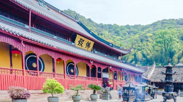 天童寺距离宁波26公里的太白山麓,其历史可以追溯到晋朝,是宁波有名的千年古刹之一。来这的游人香客不多,寺里时常能看到僧人在散步或打坐。即使你没有佛教信仰,来感受宗教氛围,呼吸新鲜空气也是不错的体验。和其它寺院不同的是,天童寺有三道山门,沿着林荫小道上山,会依次经过伏虎亭、古山门和景倩亭,路上远远就能看见山上的万佛塔。因为寺院就在天童国家森林公园旁边,一路上的景色非常好,满眼都是绿色。再往前,走过走七塔苑的七座石塔,就到了万工池,这里的两个池子原来是放生池,如今一个池子里还有不少放生的小乌龟。万工池对面的照壁上写着“东南佛国”四字,周围的树木和寺院的建筑倒映在池水中非常好看,引得不少游人在这儿拍照。旁边的广场上有许多鸽子,哄抢着游人丢的饲料。进入寺院顺着山势往上走,中轴线上的主建筑依次是佛殿、法堂(藏经楼)、罗汉堂,宏大的建筑群之间以长廊相连接,因此进入寺庙便能“晴天不晒太阳,雨天不走湿路”。如今寺中较古老的建筑是明朝重修的佛殿和方丈殿,古朴庄严。西侧法堂内供奉着顺治皇帝所赐的鎏金药师铜像,东禅堂现为藏品陈列室,展出一些佛教文物。不容错过的是北侧的罗汉堂,里面的罗汉石雕非常精美,人物神态自然老成,颇有神韵。爬到较高处的应真亭,在这里俯瞰寺院全貌和四周的山景,视野十分开阔。亭子周围还有许多纪念碑,多为日本佛教团体和佛教人士所立,许多香客和游客在这里休息、赏景、拍照。下山回到“东南佛国”照壁,从照壁旁边的小路往左走,不远就是千佛塔,塔附近有一个提示牌写着“古天童”。顺着路走过一段比较冷清的小道,便能来到竹林深处的古天童。比较常规的行程是,上午游玩天童寺后,中午稍事休息,下午继续前往天童国家森林公园爬山,而后乘车返回宁波市区。