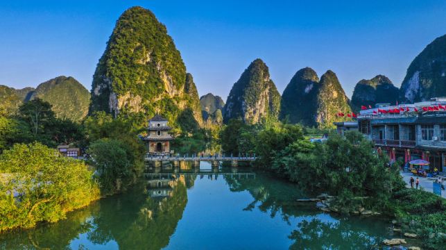 广西靖西市旧州景区算是保留较完好的古镇,这里奇峰秀美,山水如画,田园似锦,历史悠久,壮民族民俗风情浓郁,素有“壮族活的博物馆”之美誉。旧州景区的文物胜迹也比较丰富,有明代建的张天宗墓园、岑氏土司古墓群及美名远扬的古朴典雅的绣球街。